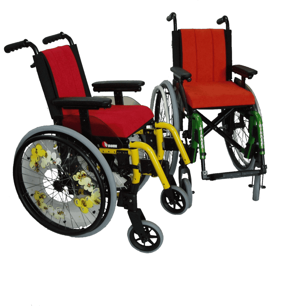 Bomi kørestol er en manuel sammenklappelig kørestol med gode indstillingsmuligheder til børn.