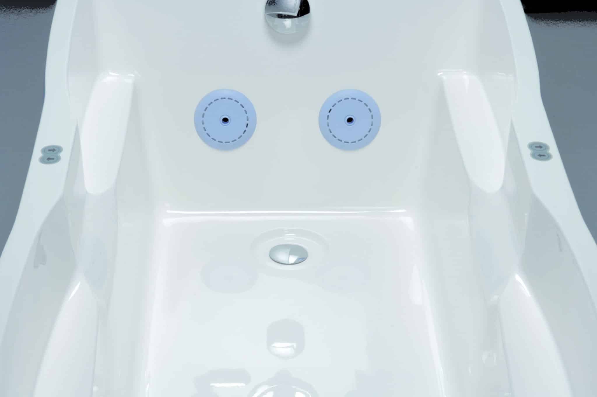 Ergonomisk designet badekar der sikrer større bevægelighed for brugeren og plejer. Højdejusterbar badekar i glasfiber med beskyttelse gummi monteret på indvendig sider. Manual ventiler på begge sider af termoventil.