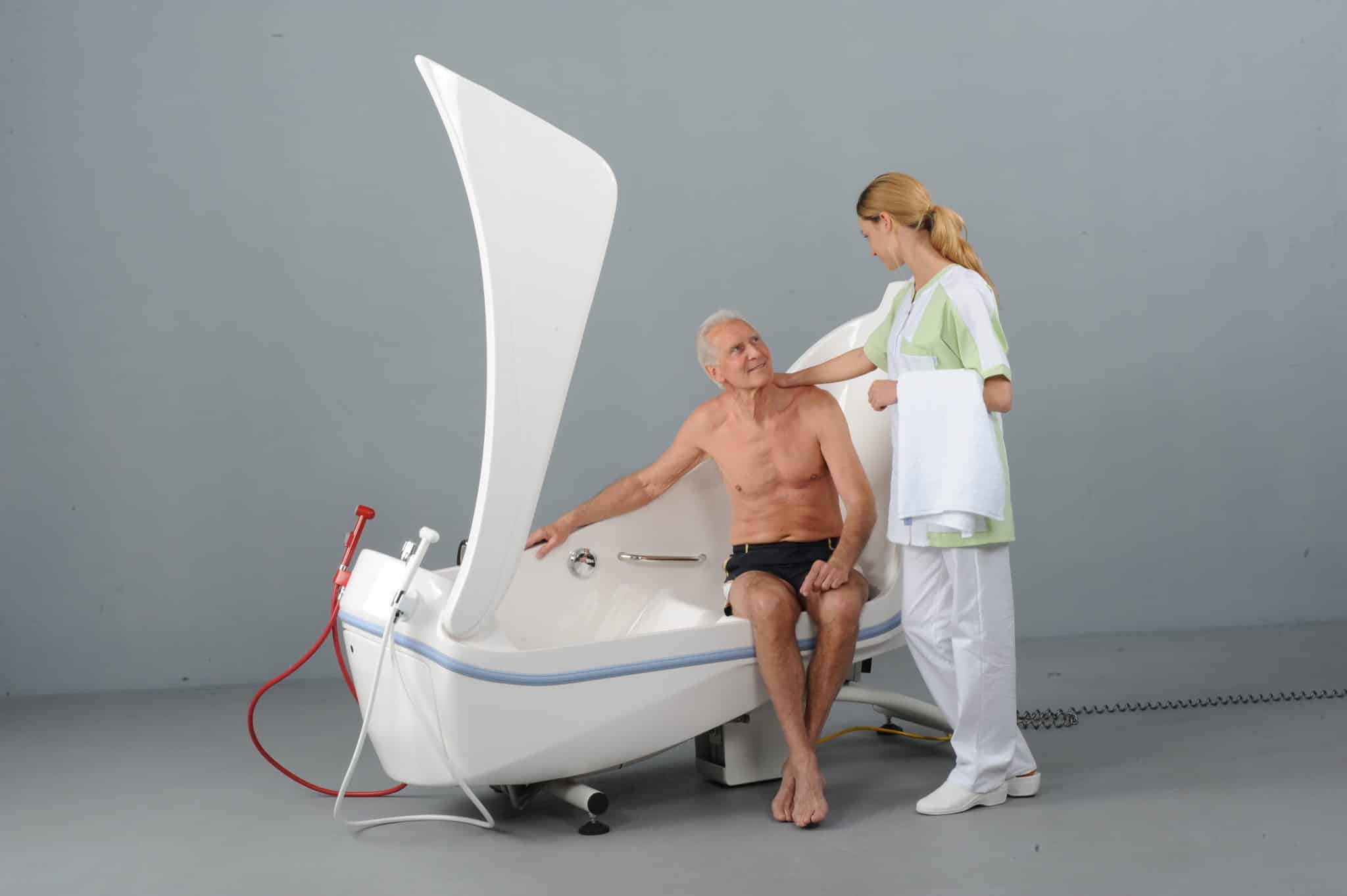 Indstignings badekar Relax er for lettere pleje af handicappede såvel som patienter, der har brug for hjælp. Dette indstignings badekar fås med manuel eller elektrisk svingdør, hvilket er med til at formindske pladsbrugen, som hvis døren åbnede ud af. Vores produktion er underlagt et kvalitetsstyringssystem i henhold til ISO 9001 og Produktet har en CE-mærkning i henhold til EU-direktiv 93/42/EF