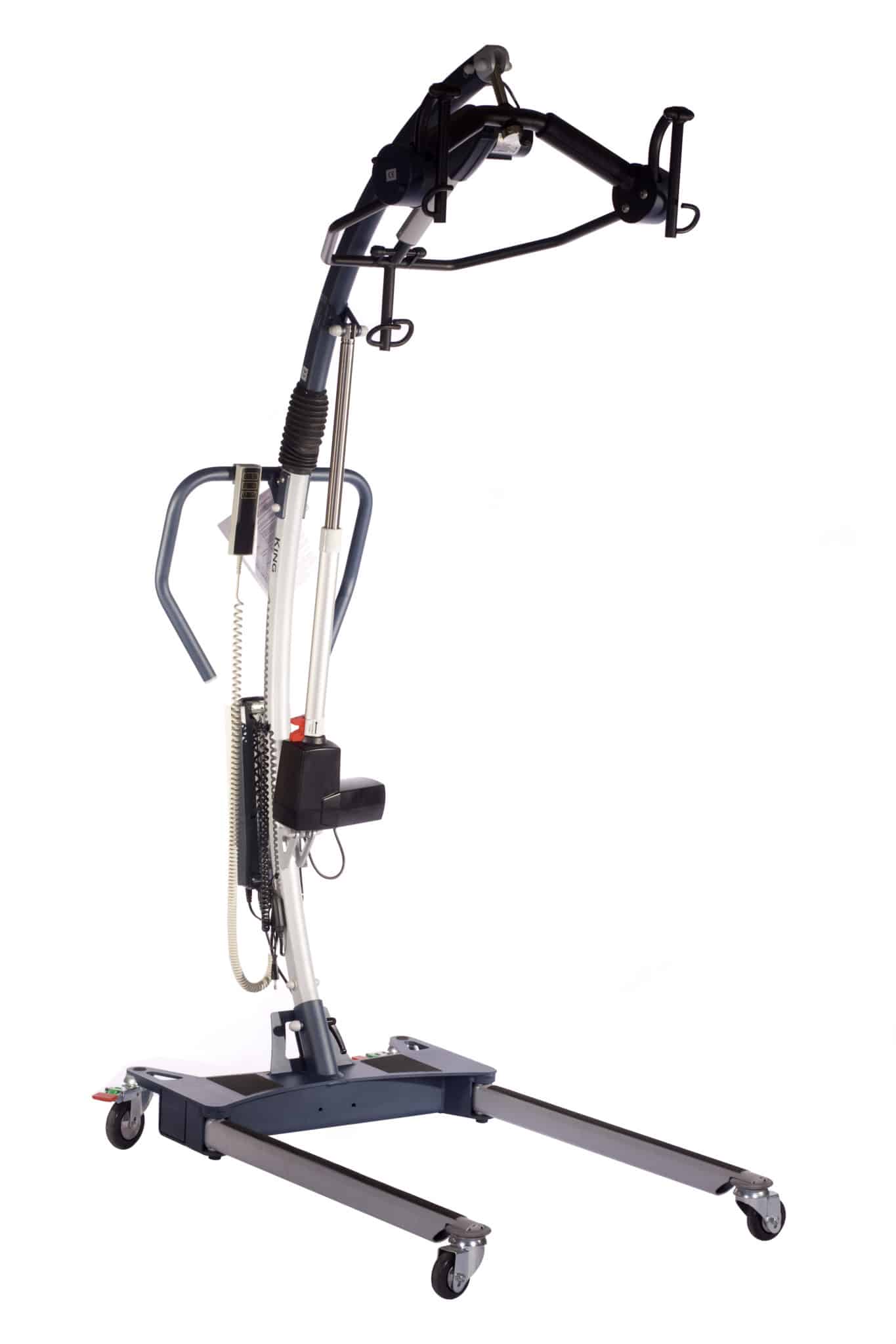 Careline King 250 med indbygget 4-punkts elektrisk løfteåg og 6-punkts håndkontrol: Linak. Med det speciale løfteåg er det sikkert og let at manøvre patienten nøjagtigt i den position som ønsket. Patienten kan løftes fra gulv til siddende eller siddende til liggende stilling. Careline King 250 kan blive udstyret med en medicinsk godkendt vægt. Med hukommelse funktion og automatisk nulstilling. Careline King 250 V-benåbning på liften, som kun åbner de forreste benvanger, det giver en større åbning samt er mere stabil. Dette giver mulighed for at bygge liften op til 250 kg uden at gå på kompromis med sikkerheden.